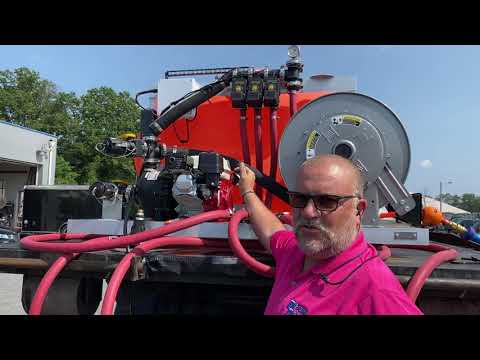 7' SCH80 CPVC boom with hitch plug-in. Hannay retractable hose reel with 50' of spray hose and Udor spray gun. In cab controls for boom selection.
